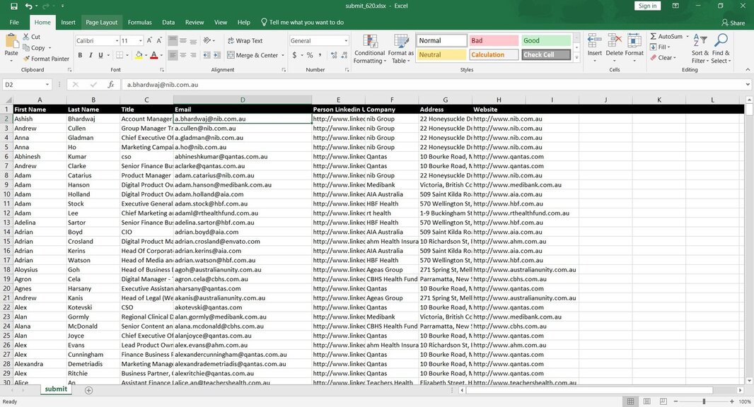 Hope you are well. Another project for you, this time Australian health insurance companies. I need people in the usual roles that work for these companies in Australia only: Ideally around 300-400 people if that is possible... Thanks!